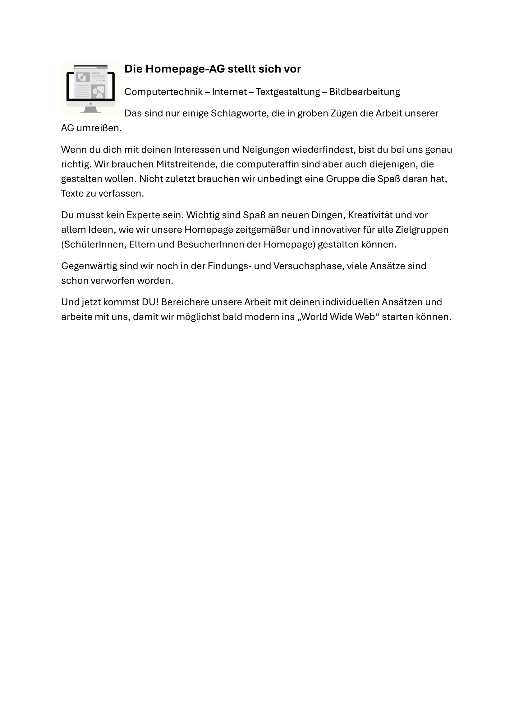 Homepage AG | Frau Engler | Do. 7./8. Std. |
