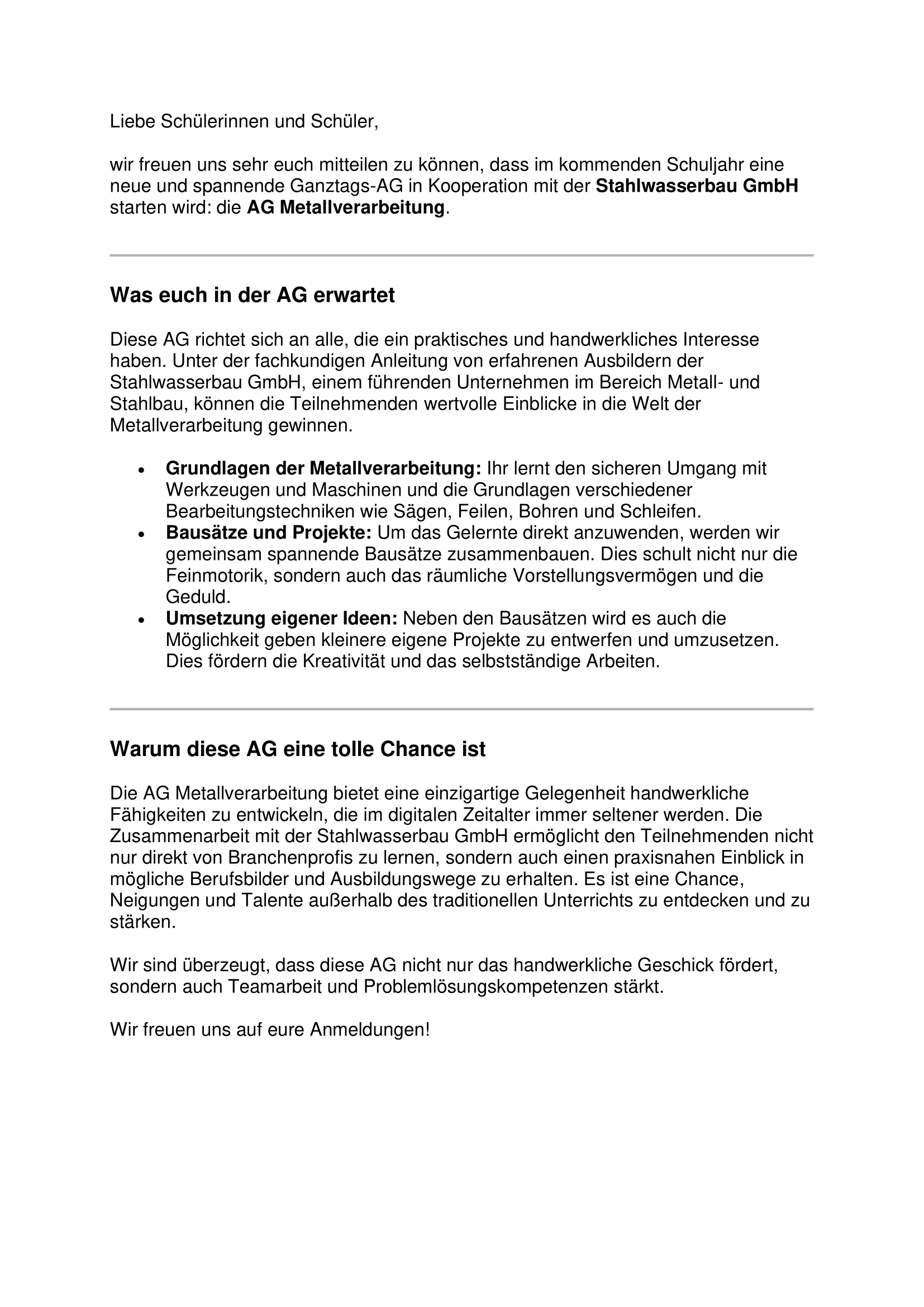 Die zahlreichen AGs werden in der nachfolgenden PDF-Datei einzeln vorgestellt